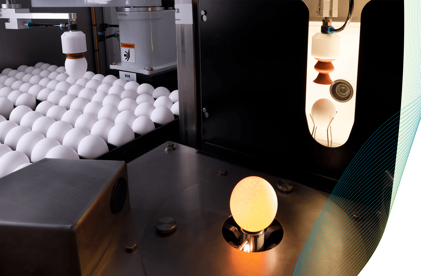 Short wrap up: The Eggxaminator was created in collaboration with Hendrix Genetics Innovations and one of our tech partners from the Brainport Eindhoven region (home to companies such as Philips, ASML, and VDL). The Eggxaminator uses Robotics and Machine Vision technology to examine and collect data on exterior egg phenotypes with large accuracy and consistency.